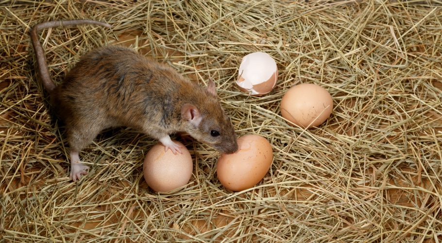 実はネズミの繁殖力は強く、なんと生後3か月から出産し、年に6~7回、1回に6~10匹の子を産みます。 なので畜舎でのネズミの密度は、少ない畜舎では飼育頭数の5~10%、多い畜舎では30%も存在すると言われています。 またネズミは毎日、自分の体重の1/3~1/4もの量の餌を食べますので、畜舎にいるネズミの数を1000匹と仮定すると、1年間のネズミの餌代は、単純計算すると、なんと150万円もかかってしまいます。